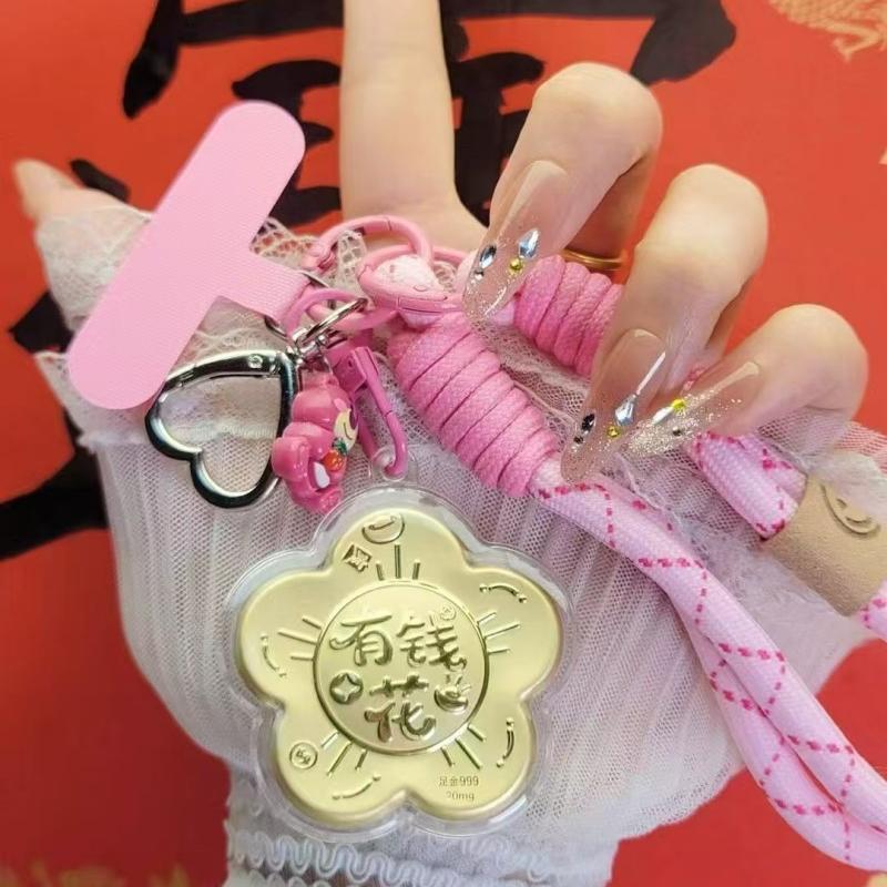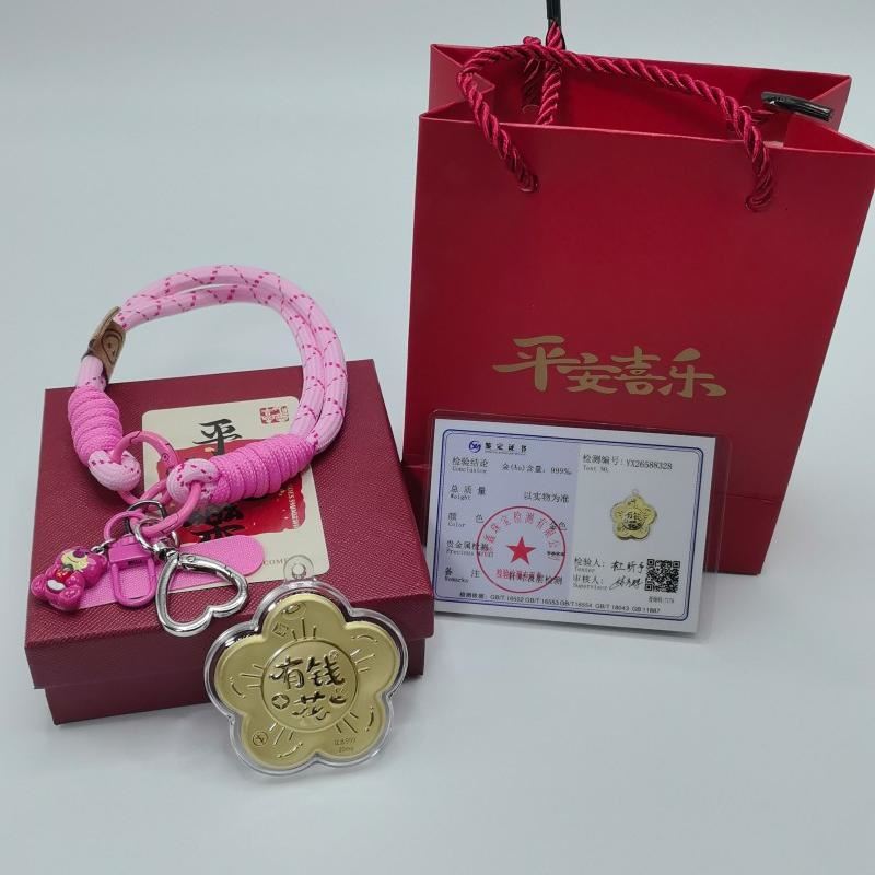 產(chǎn)品材質(zhì):表面含金 產(chǎn)品配置:包裝+掛墜+證書(shū) 繩子顏色混批 馬年添"有錢(qián)花",財(cái)運(yùn)一路發(fā)招財(cái),紅金配色超應(yīng)景~掛車?yán)铮?,連家里都喜氣洋洋的! “新年贈(zèng)此花 歲歲有錢(qián)花” 應(yīng)該沒(méi)人能拒絕這朵金燦燦的“有錢(qián)花”吧~ 今年份的"荷包守護(hù)神"就是它了,送禮佳選