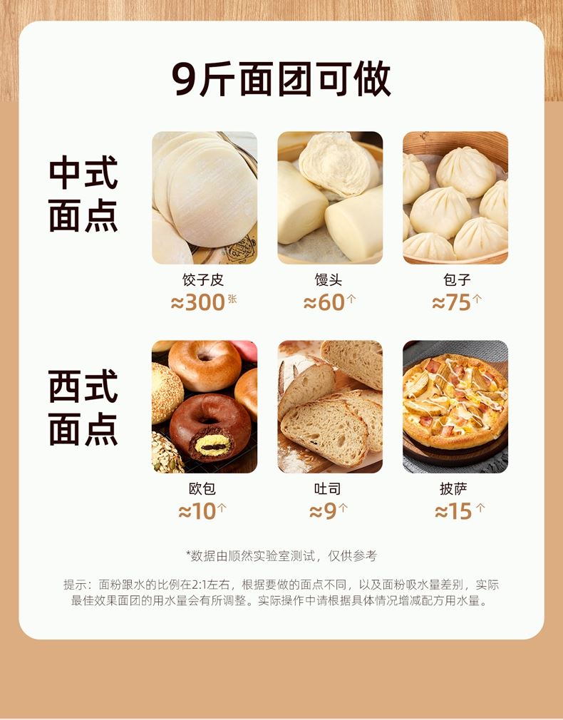 功能多樣:8升容量具備全自動(dòng)和面、發(fā)酵、醒面功能,還可用于蛋清奶蓋打發(fā)、攪拌肉餡等,能滿足中西式面點(diǎn)制作需求;
