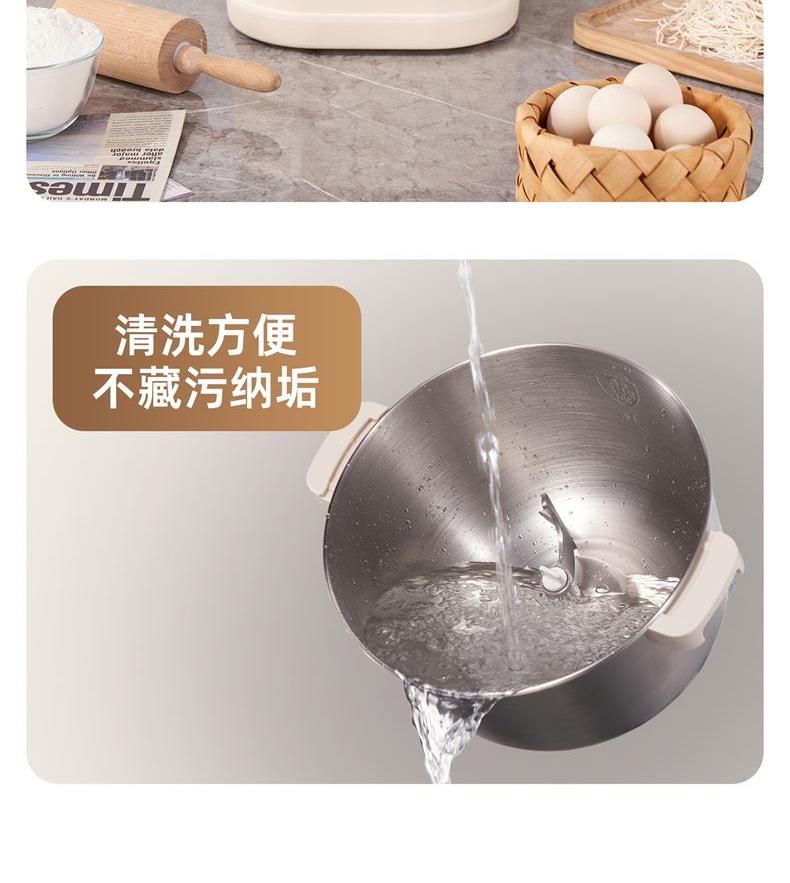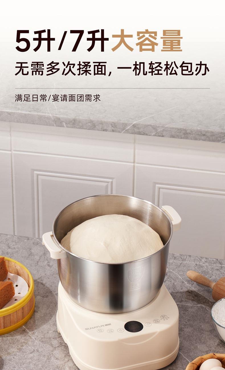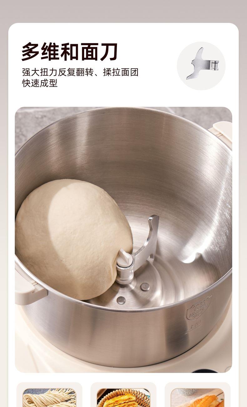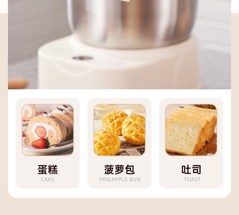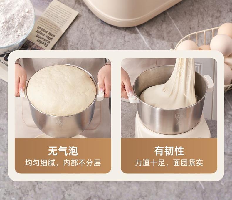 功能多樣:7升容量具備全自動和面、發(fā)酵、醒面功能,還可用于蛋清奶蓋打發(fā)、攪拌肉餡等,能滿足中西式面點制作需求。 智能便捷:帶有微電腦定時功能,智能揉面 + 恒溫醒面,無需人工長時間看管,省力又省心。 材質(zhì)優(yōu)良:食物接觸材質(zhì)為 304 不銹鋼,堅固耐用且衛(wèi)生健康,清洗方便;機身采用 ABS 材質(zhì),簡約小巧。 動力強勁:250 瓦大動力電機,配合十字錐形蓋,能輕松揉出 “三光” 面團,快速出膜。 噪音較?。褐绷鬏p音設(shè)計,運行時噪音低,不會對日常生活造成干擾。