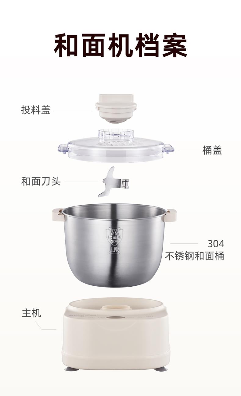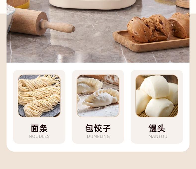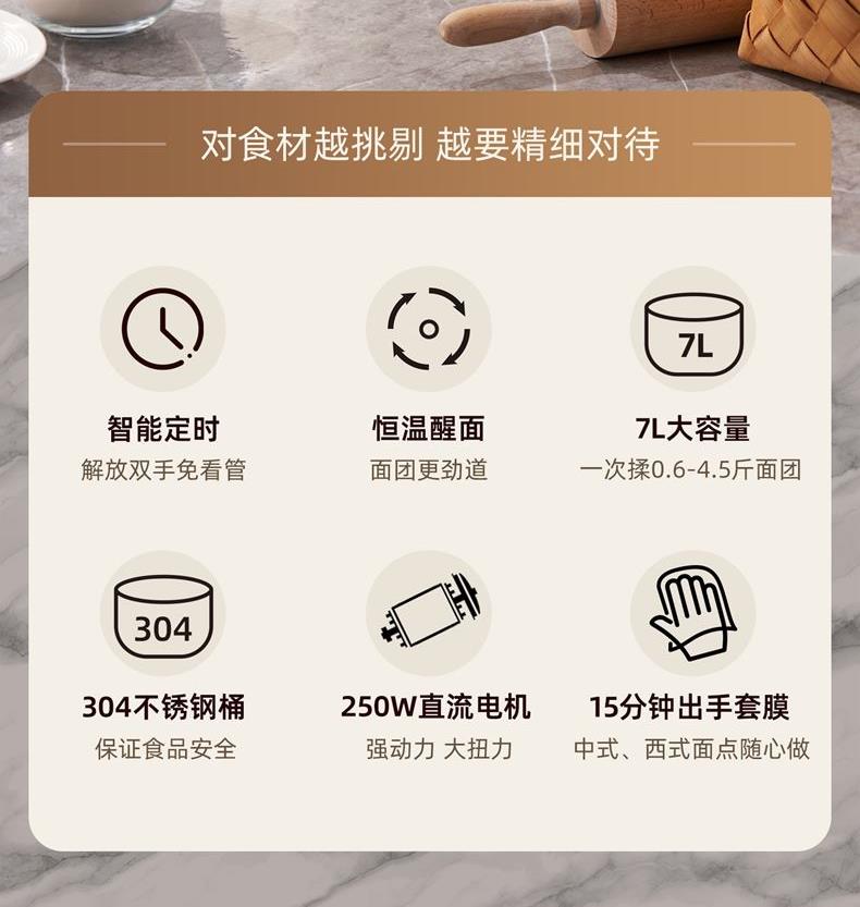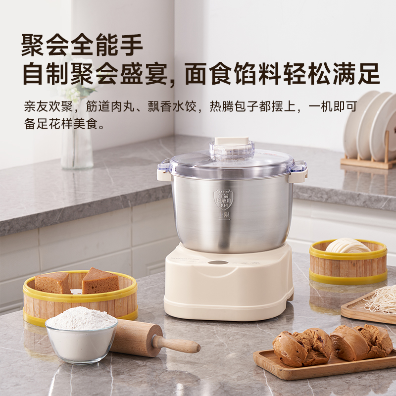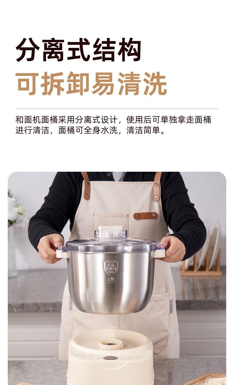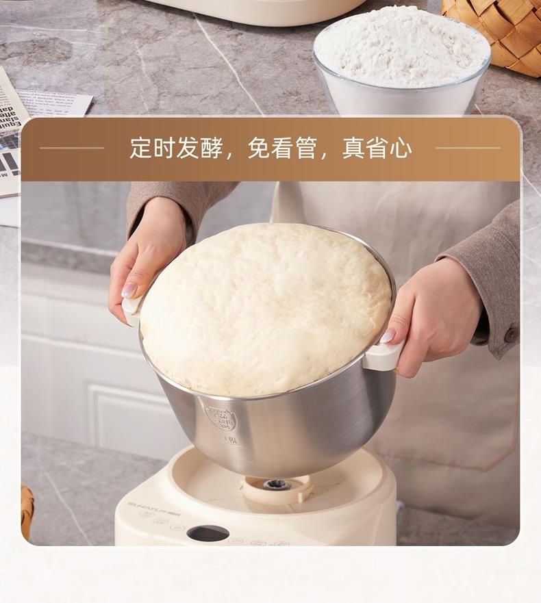 功能多樣:7升容量具備全自動和面、發(fā)酵、醒面功能,還可用于蛋清奶蓋打發(fā)、攪拌肉餡等,能滿足中西式面點制作需求。 智能便捷:帶有微電腦定時功能,智能揉面 + 恒溫醒面,無需人工長時間看管,省力又省心。 材質(zhì)優(yōu)良:食物接觸材質(zhì)為 304 不銹鋼,堅固耐用且衛(wèi)生健康,清洗方便;機身采用 ABS 材質(zhì),簡約小巧。 動力強勁:250 瓦大動力電機,配合十字錐形蓋,能輕松揉出 “三光” 面團,快速出膜。 噪音較?。褐绷鬏p音設(shè)計,運行時噪音低,不會對日常生活造成干擾。