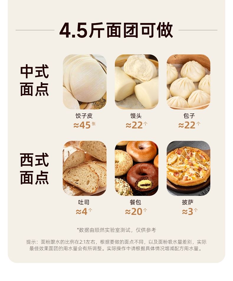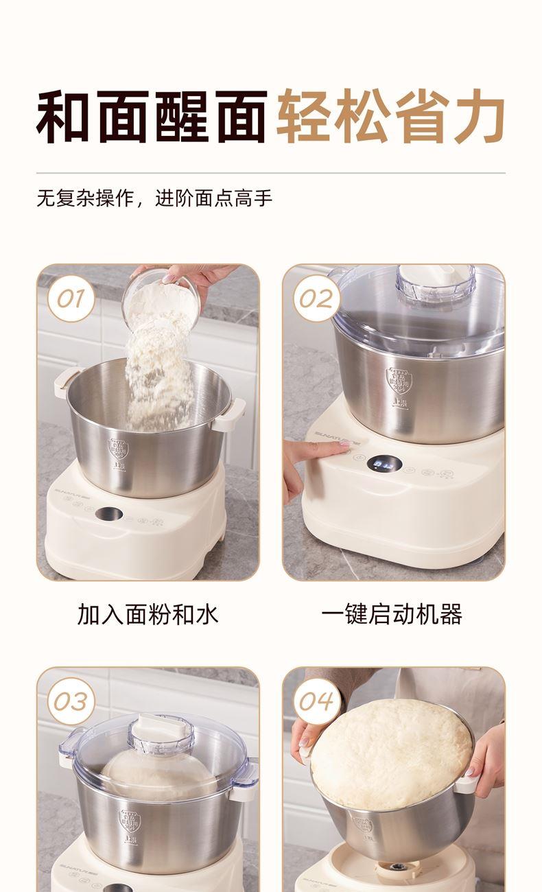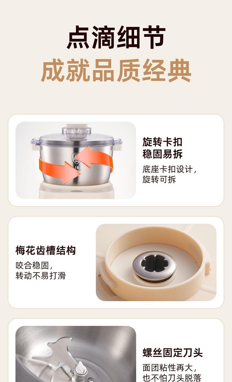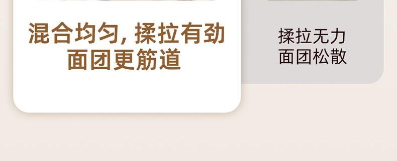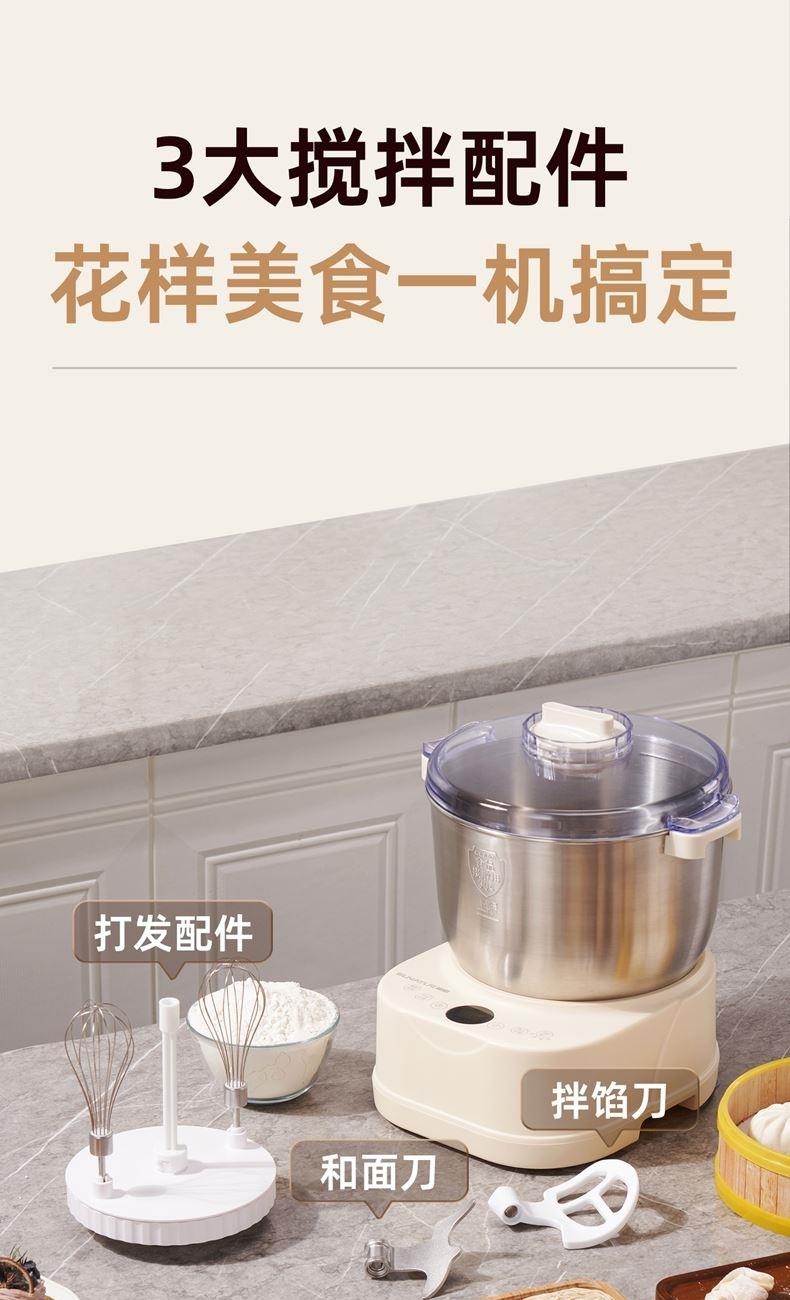 功能多樣:7升容量具備全自動和面、發(fā)酵、醒面功能,還可用于蛋清奶蓋打發(fā)、攪拌肉餡等,能滿足中西式面點制作需求。 智能便捷:帶有微電腦定時功能,智能揉面 + 恒溫醒面,無需人工長時間看管,省力又省心。 材質(zhì)優(yōu)良:食物接觸材質(zhì)為 304 不銹鋼,堅固耐用且衛(wèi)生健康,清洗方便;機身采用 ABS 材質(zhì),簡約小巧。 動力強勁:250 瓦大動力電機,配合十字錐形蓋,能輕松揉出 “三光” 面團,快速出膜。 噪音較?。褐绷鬏p音設(shè)計,運行時噪音低,不會對日常生活造成干擾。
